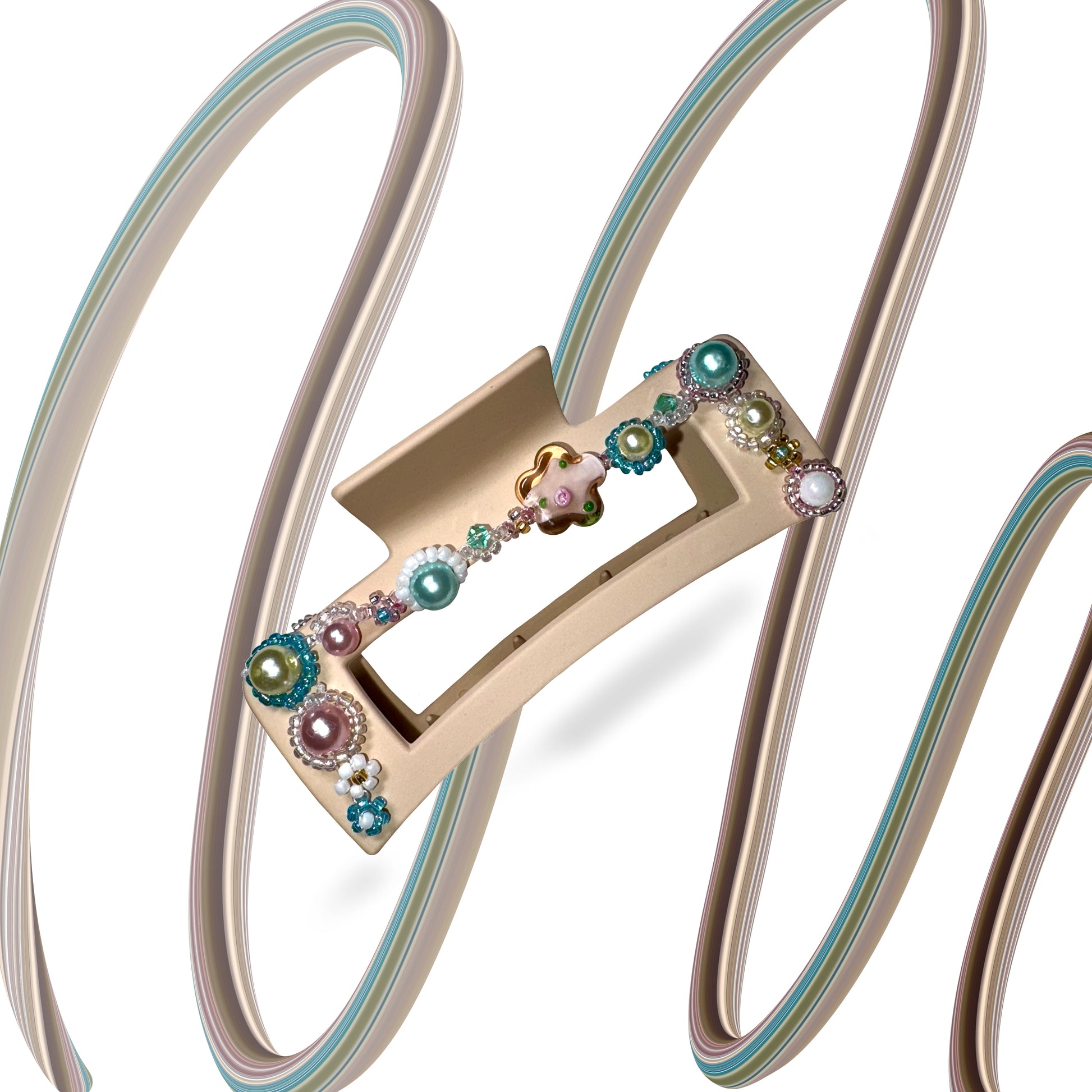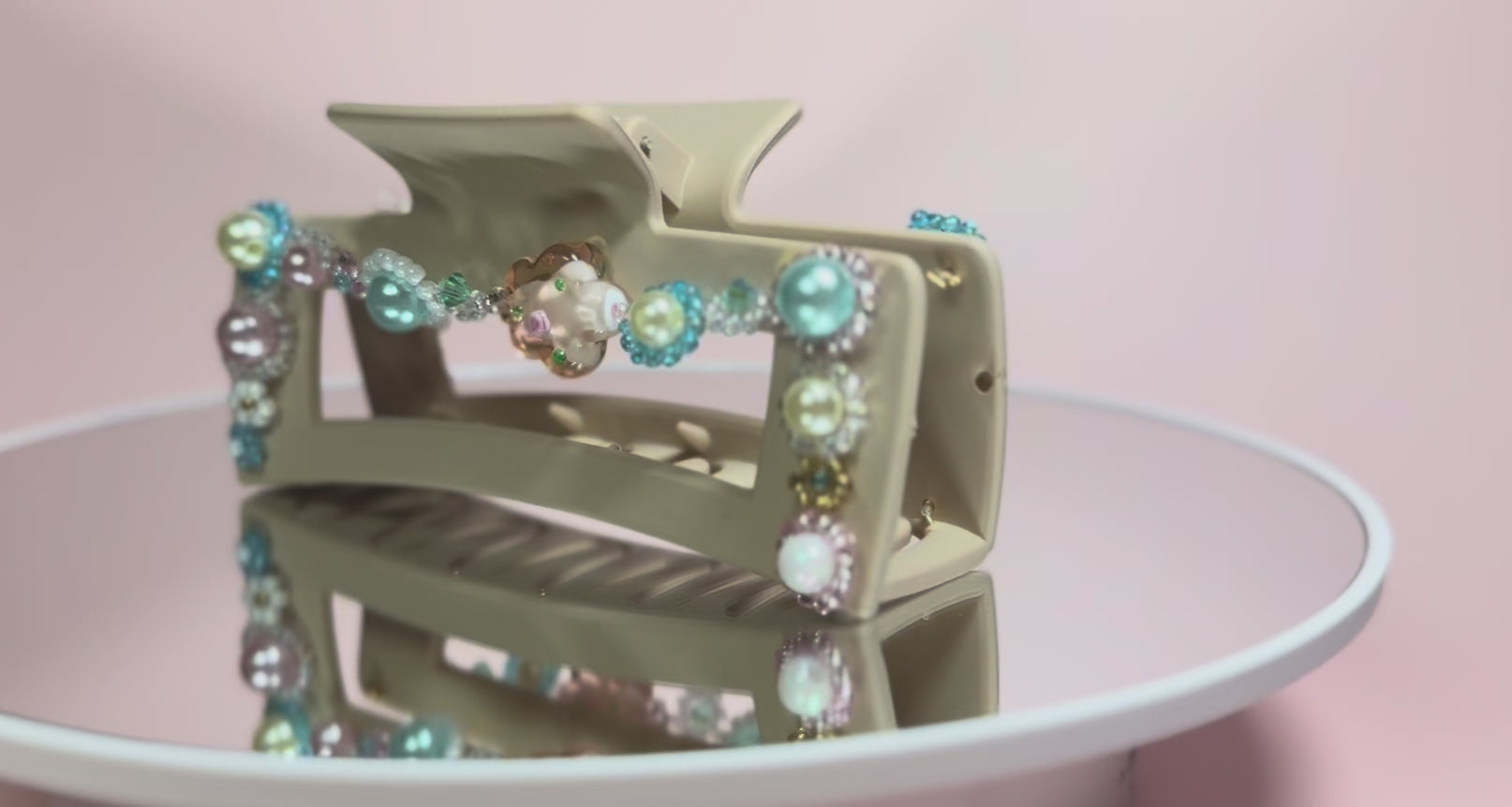 Sweet like candy, this clip hits the spot! Our Candiland clip satisfies all your sugar cravings with glass flowers adorned by beautiful pops of blue, yellow, and pink! Set on a large claw clip, adding this to your hair makes everything a bit sweeter, and you won’t regret having it in your collection!