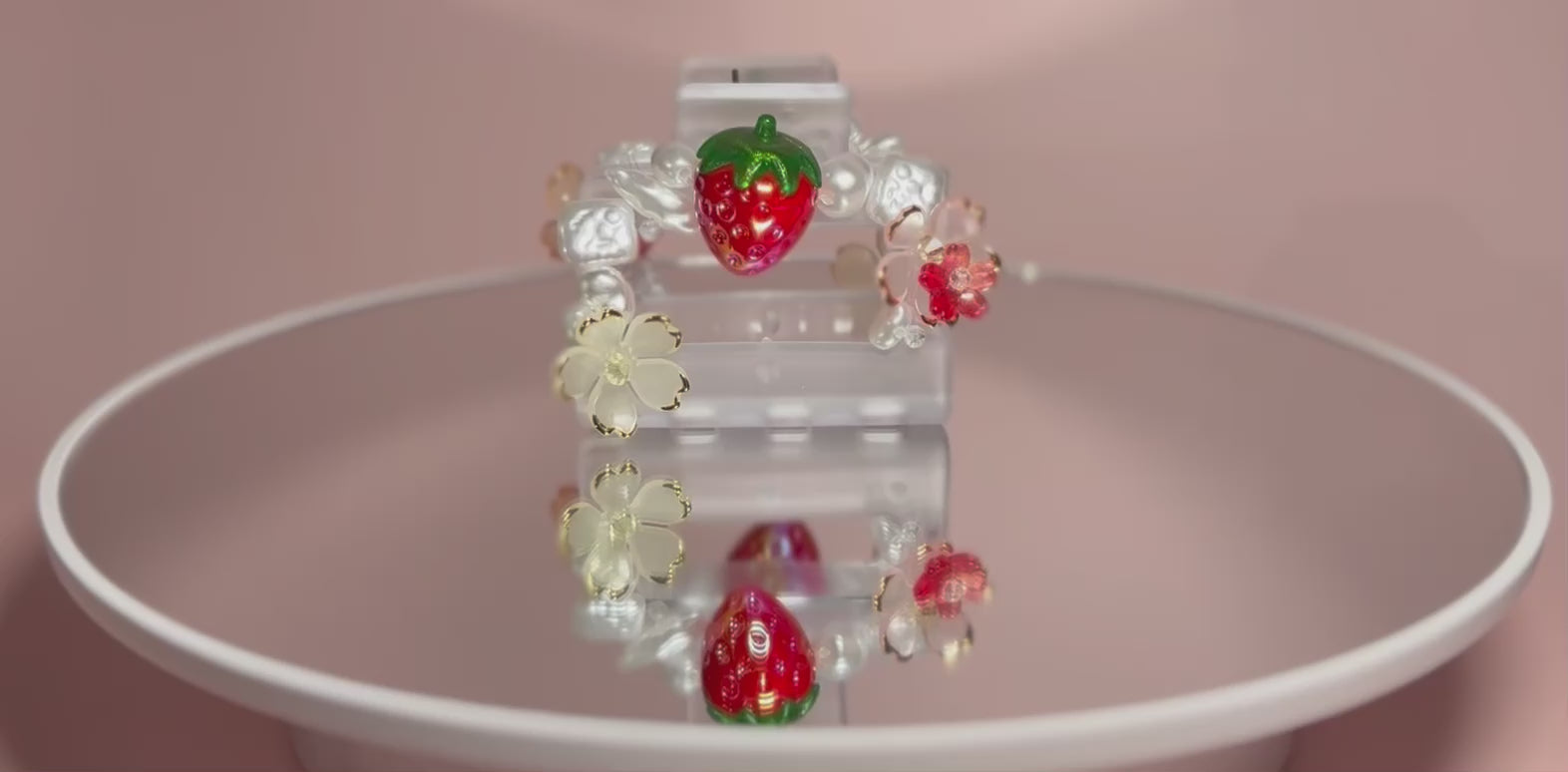 Show your inner glow with our Strawberry Glaze mini clip! While this clip has a more subtle vibe, it still turns heads! With elegant pearlescent freeform beads mixed with hints of color through the flowers, all focus will be drawn to the strawberry perfectly set in the center. Whether you wear this clip casually or for special events, people won’t be able to keep their eyes off your hair!
