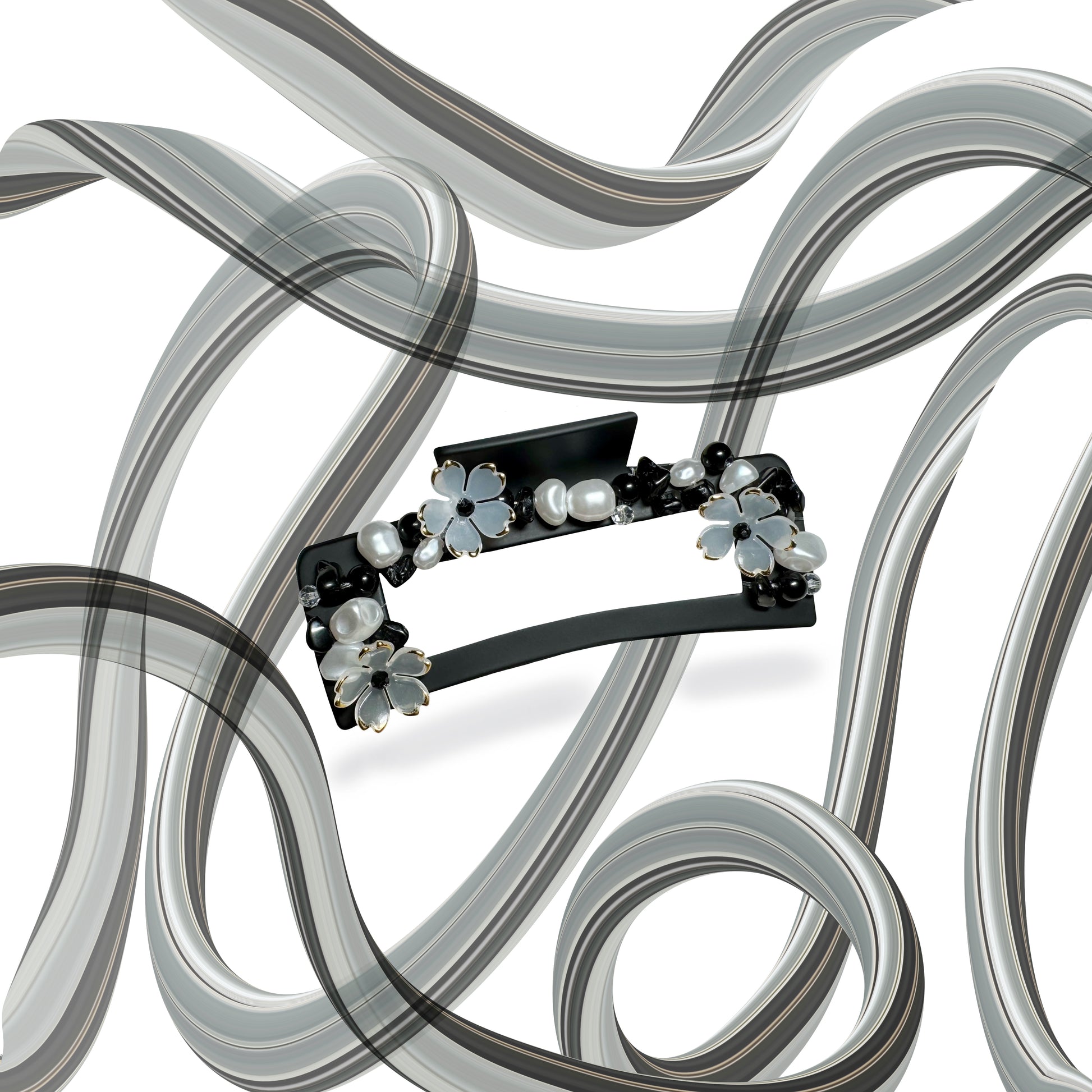 Everything is more elegant in black and white, and our Tuxedo Blossom large claw clip affirms it! With pearls, flowers, and a little bit of sparkle, you’re sure to stun in this.